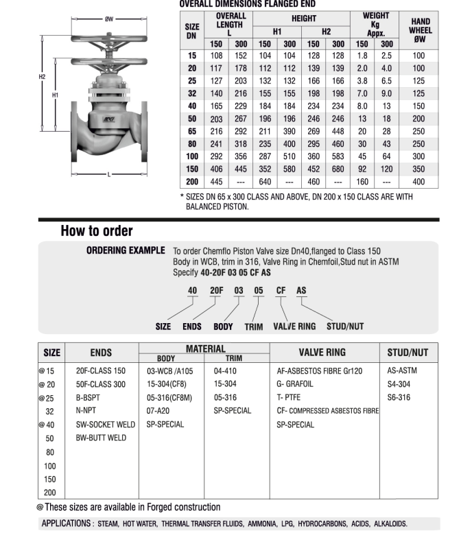 * SIZES  DN 65×300 CLASS AND ABOVE, DN 200×150 CLASS ARE WITH BALANCED  PISTON